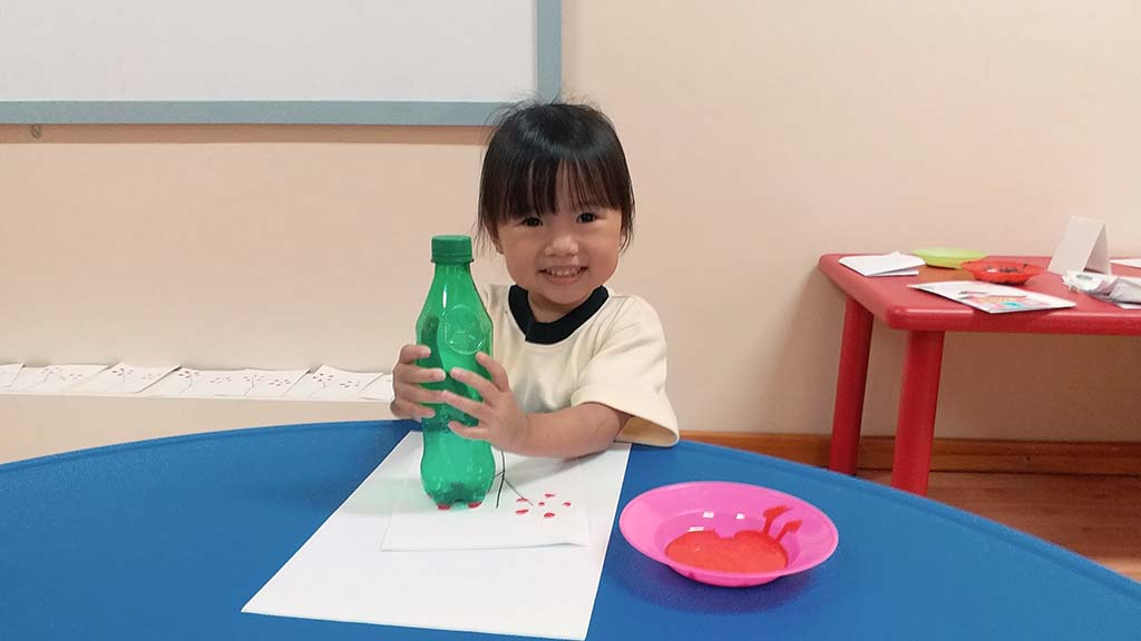 Yee... Lihatlah adik-adik KBB belajar membuat stampel dari botol bekas lho.. Kira-kira seperti apa ya jadinya? Ternyata barang-barang bekas