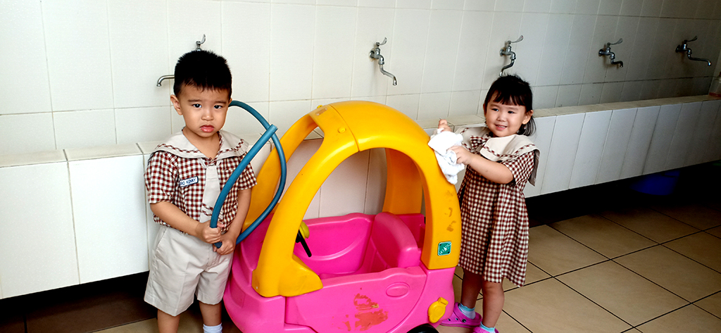Yeah... hari ini kami mau belajar membantu ayah di rumah. Adik-adik KB A terlihat sangat ceria. Ayah yang biasanya