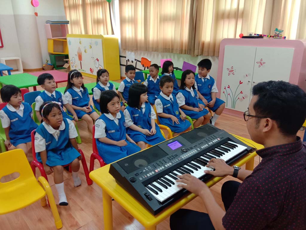 La la la la la la la la…… suara-suara merdu terdengar di salah satu ruang kelas TK Kristen Petra